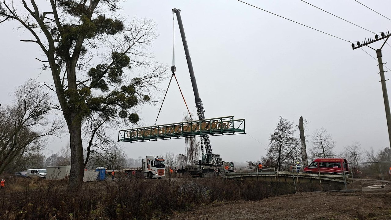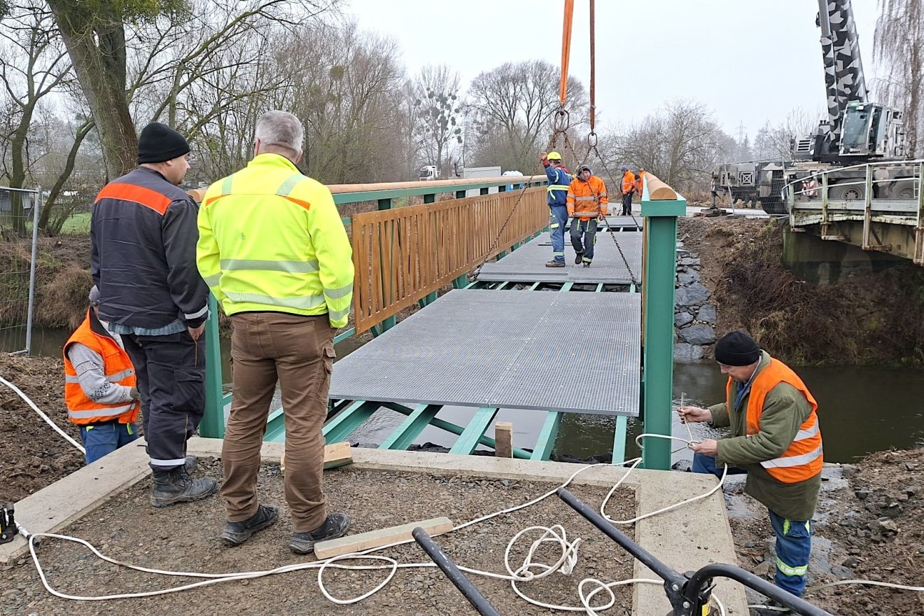 Instalace nového mostu přes náhon Moravy u mohelnického Bagru. Foto: red