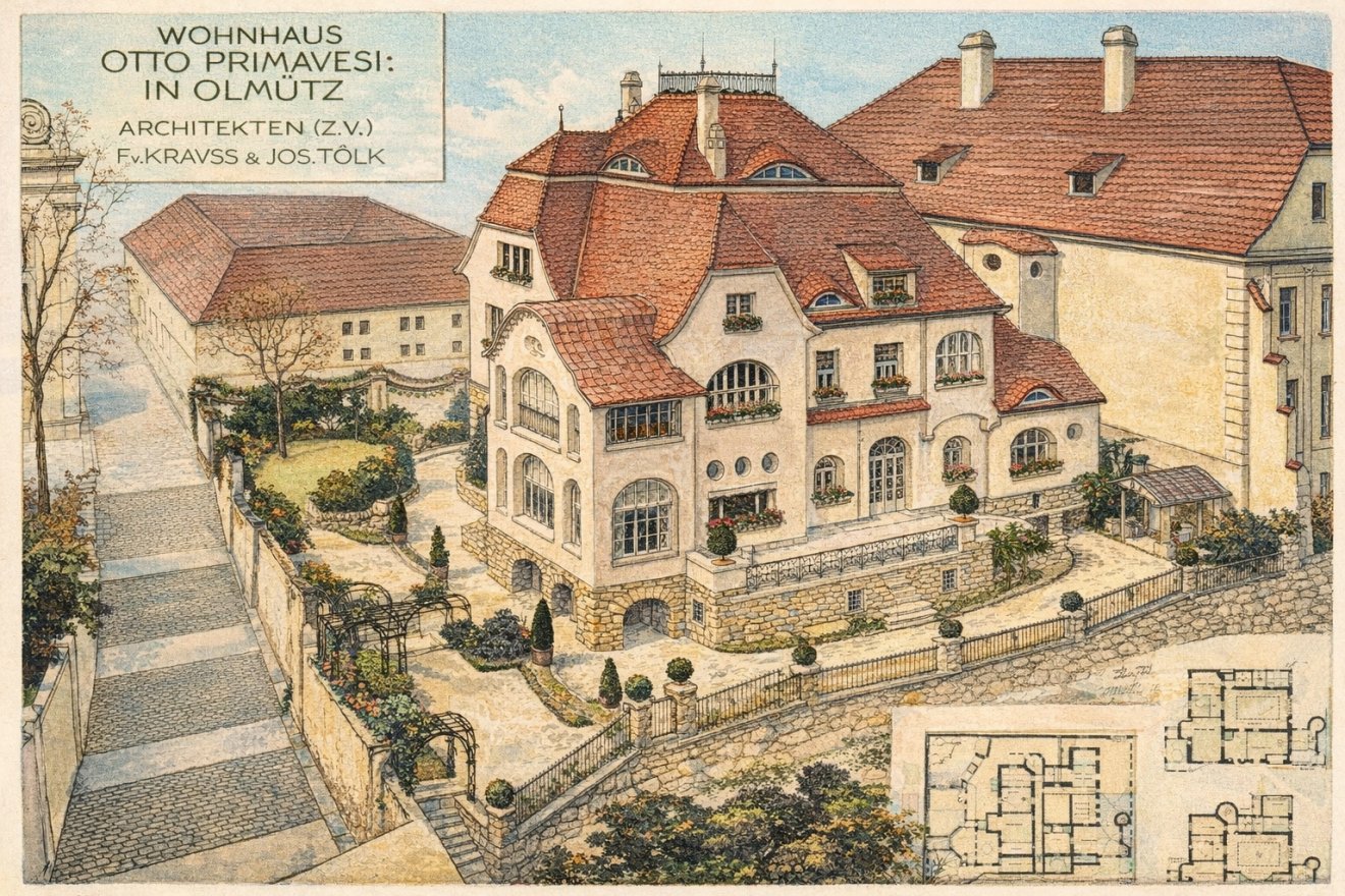 Takže ona nenápadná a nevysoká stavba za návrhem Vily Primavesi ukazuje ve skutečnosti budovu, která v sobě nesla mimořádně významnou součást staleté olomoucké historie. Velká škoda, že ji naši předkové někdy po pořízení této kresby zbourali. Ale zase na druhou stranu můžeme poděkovat schopným a pečlivým archeologům, že dokázali rozkrýt zapomenuté a utajené dějiny, skryté pod podlahami budovy školy z roku 1908.