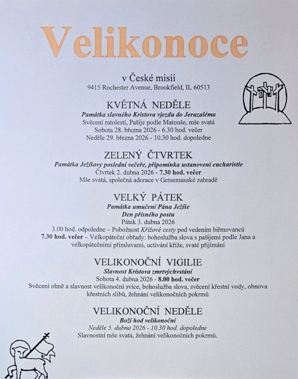 Množství informací o posledních dekádách devatenáctého a prvních desetiletích dvacátého století lze čerpat z krajanského katolického tisku. V Chicagu vycházel například list Katolík. Nedaleko Chicaga, v městečku Brookfield, sídlí dodnes Česká katolická misie "Velehrad" v Chicagu. Je zde krásný kostel, vydavatelství a fungující krajanský spolek. I během letošních Velikonoc byste si zde mohli užít atmosféru tradic Čech a Moravy.