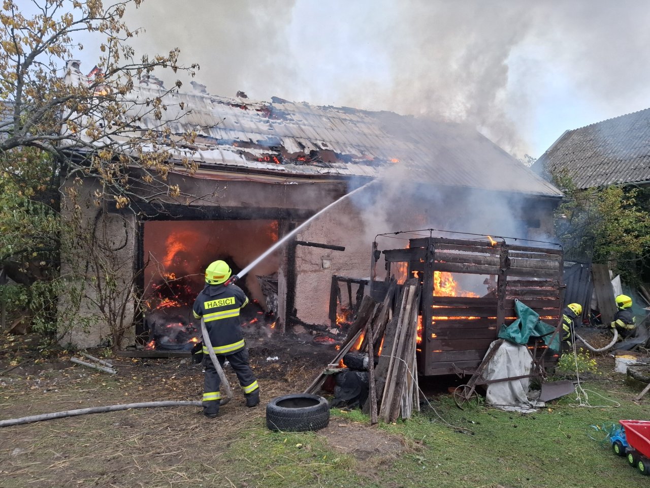DOPLNĚNÍ: "Poskytli jsme první pomoc majiteli, který byl s popáleninami 2. stupně transportován LZS do nemocnice. Před požárem a kouřem jsme uchránili koně, kterého jsme odvedli do bezpečí," uvedl večer mluvčí HZS Olomouckého kraje Josef Koláček. "Jedním C proudem jsme ochlazovali ohrožený sousední rodinný dům. Zasahovali jsme v dýchací technice. Aktuálně vynášíme materiál z budovy, prolévame vodou, vyhledáváme skrytá ohniska termokamerou a dohašujeme."
