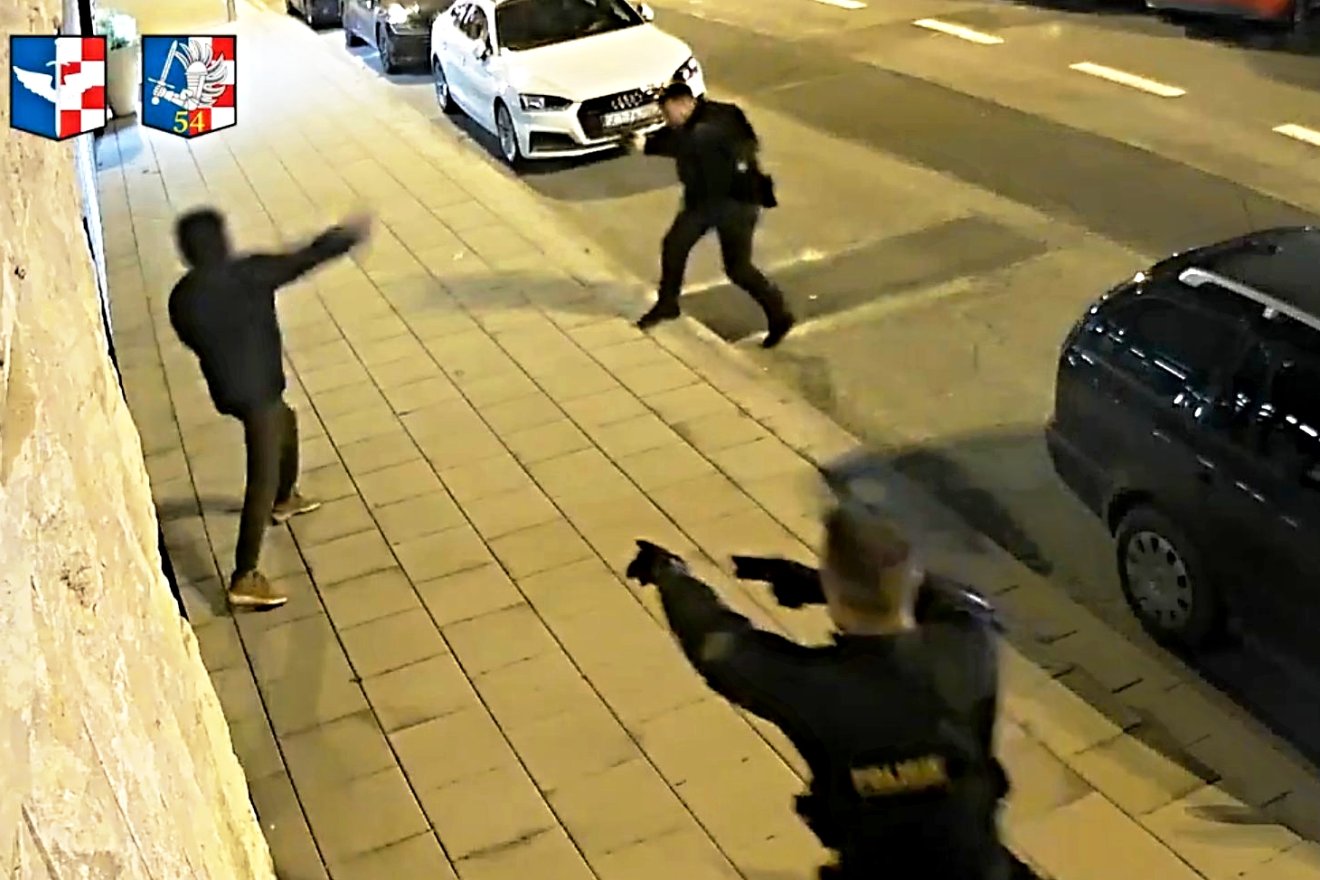 "Jdu po Hodolanské a jde tady pán, normálně drží v ruce nůž s pětadvaceticentimetrovou čepelí. Vypadá, že je celkem slušně zfetovanej," oznámil v sobotu večer na tísňovou linku svědek. Policisté pohotovostního a eskortního oddělení a oddělení hlídkové služby tedy vyrazili a označeného muže na místě záhy opravdu vypátrali, ten se však ihned s nožem s dlouhou čepelí proti nim ohnal. Během zásahu působil nepřítomným dojmem. Nereagoval na výzvy v češtině ani v angličtině a zasahující policisty ohrožoval. Po jednom z nich nůž dokonce hodil, naštěstí jej ale nezranil.