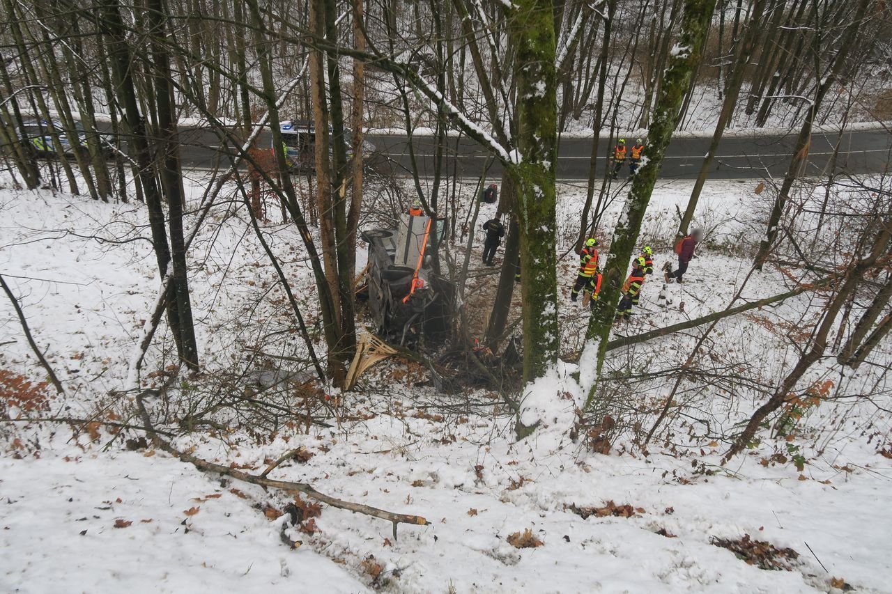 Auto skončilo hluboko pod silnicí | Foto: Policie ČR
