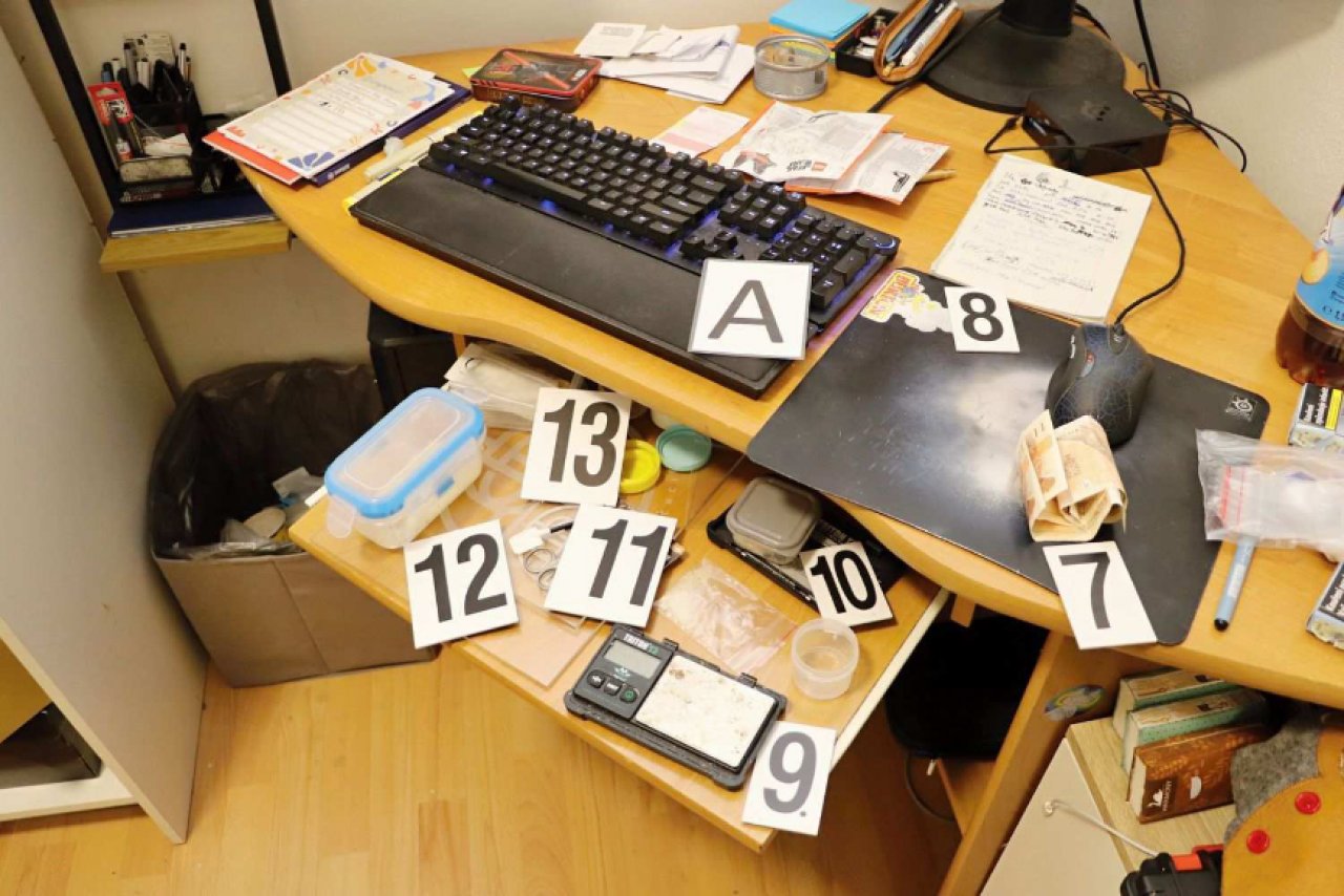 Po zadržení všech tří obviněných, z poloviny listopadu, byly na základě příkazu soudu provedeny domovní prohlídky a prohlídky jiných nebytových prostor a pozemků, při nichž byly nalezeny věci související s prodejem drog, jejich distribuci a také drogy samotné, převážně pervitin a marihuana. V případě pervitinu se jednalo přibližně o 80 gramů, taktéž byly zajištěny finanční prostředky související s prodejem drog.