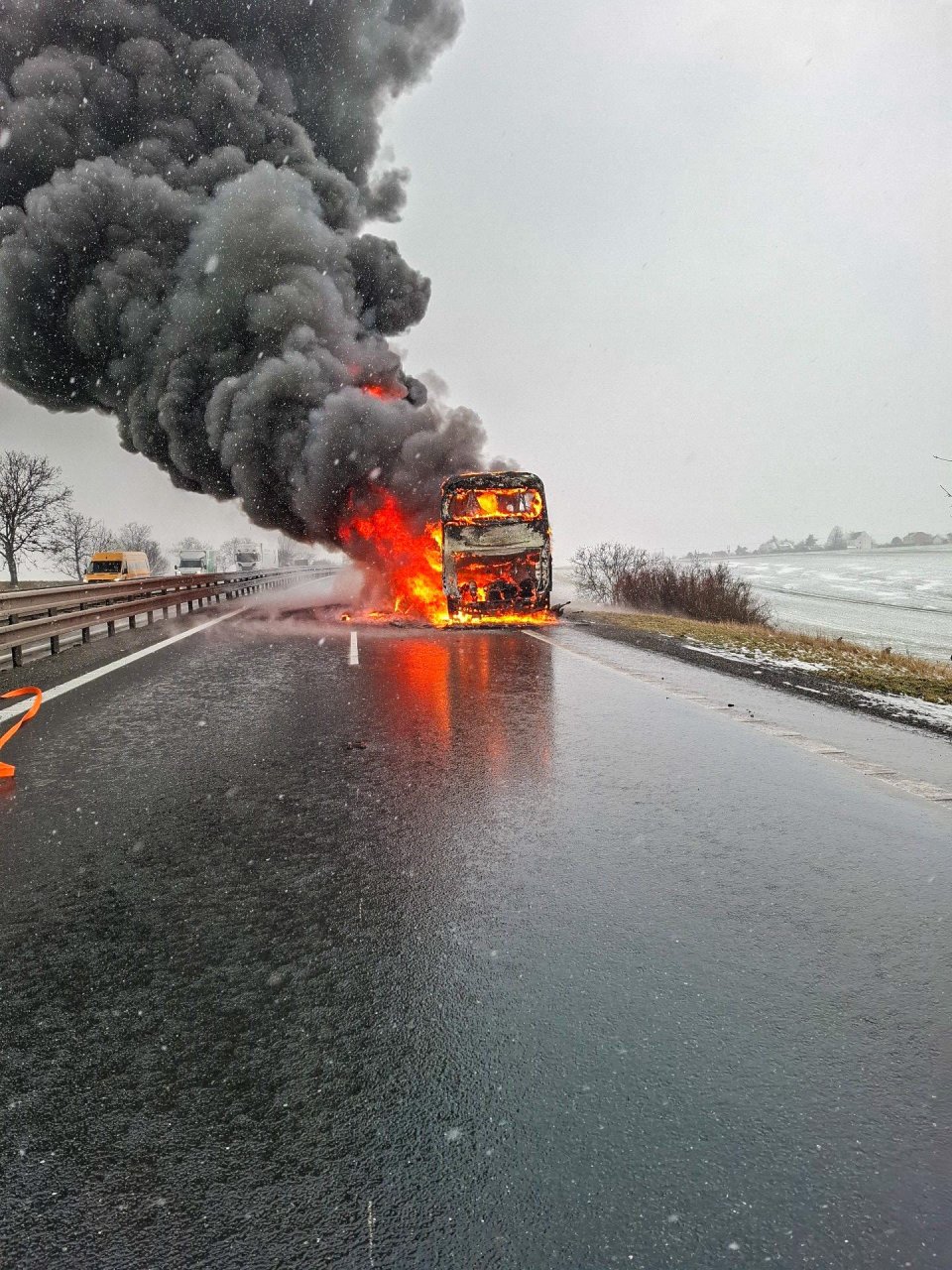 Po příjezdu jednotek byl celý autobus v plamenech. "Všechny osoby byly ještě před naším příjezdem evakuovány, vše se obešlo bez zranění. Ze stanice Olomouc nyní vyjíždí náhradní autobus k převozu evakuovaných osob," uvedl mluvčí HZS Olomouckého kraje Petr Běhal.