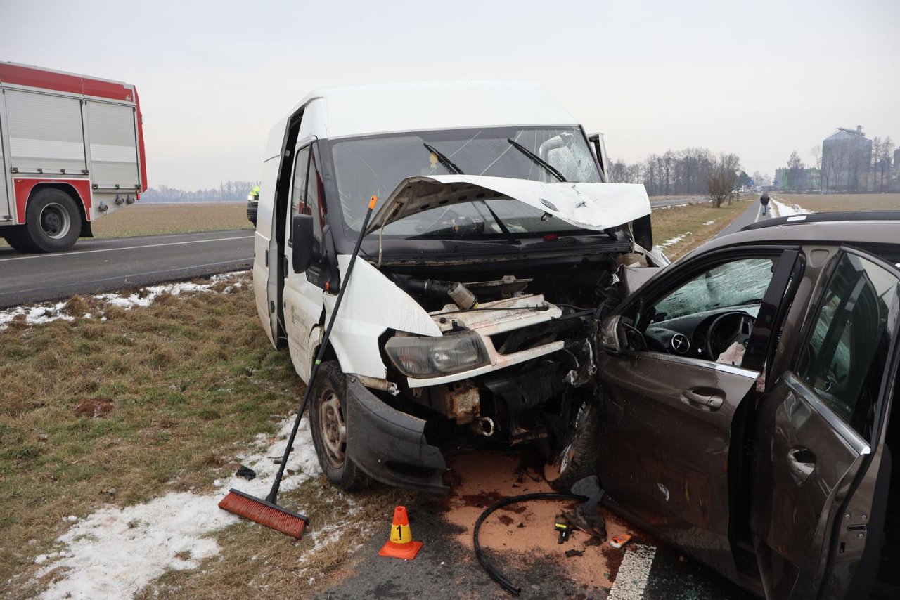EDIT 4.2.2026: Ve středu zveřejnila bližší informace o nehodě Policie ČR. "Podle zjištěných informací 51letý řidič Fordu Transit se při jízdě po přímém úseku komunikace plně nevěnoval řízení a s vozidlem přejel do protisměru, kde se čelně střetl s vozidlem Mercedes-Benz. Po střetu skončila vozidla mimo komunikaci. Při nehodě utrpěl zranění jak řidič Fordu, tak 48letý řidič Mercedesu a jeho nezletilý spolujezdec. Provedené dechové zkoušky vyloučily u řidičů přítomnost alkoholu. Způsobenou hmotnou škodu policisté předběžně vyčíslili na 250 tisíc korun," uvedla mluvčí Policie ČR Ivana Skoupilová.