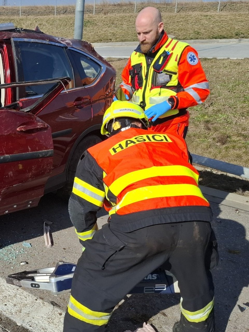 "Dvě zraněné osoby jsme vyprostili dnes dopoledne na D1 u Oseku nad Bečvou. Po nehodě osobního auta zůstal uvnitř kabiny zaklíněn řidič a spolujezdec. Vůz jsme zaklínovali proti pohybu a s pomocí hydraulických nástrojů jsme odstřihli zdemolované dveře z obou stran," popsala průběh zásahu Lucie Balážová, tisková mluvčí HZS Olomouckého kraje.
