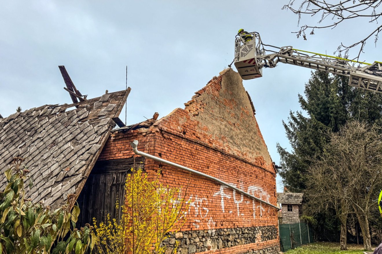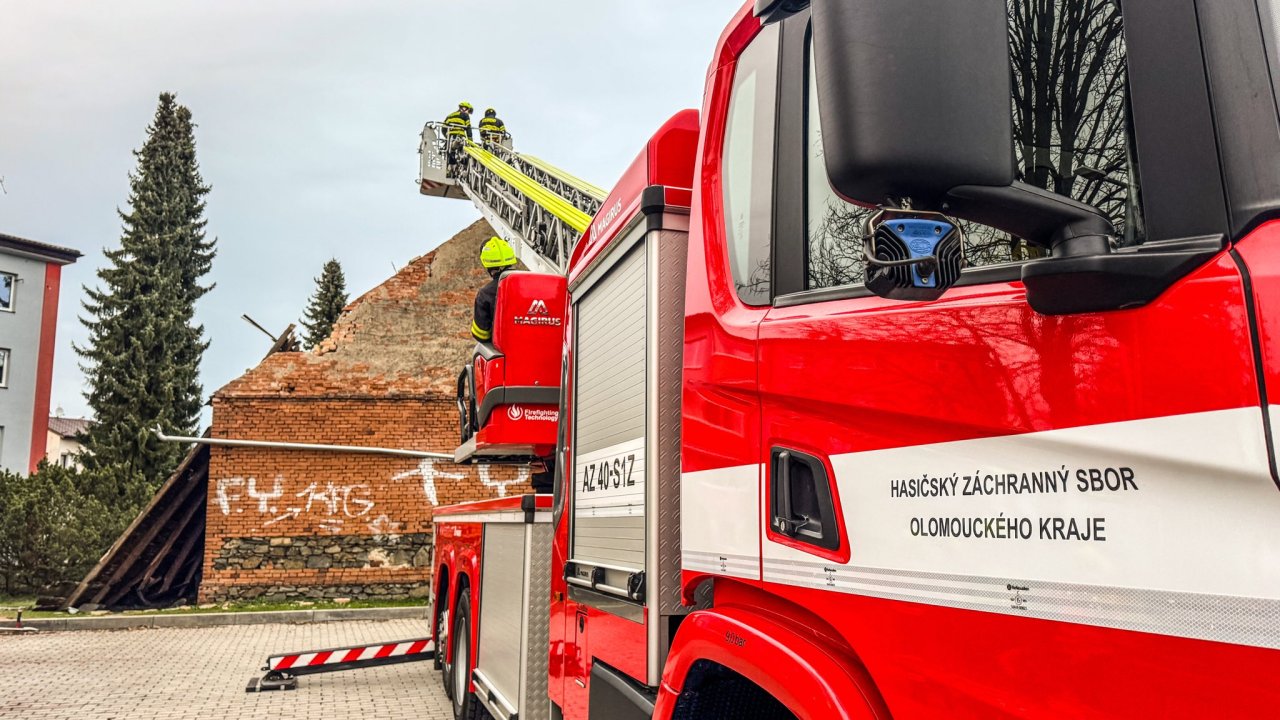 "Aktuálně zasahujeme u destrukci neobydleného objektu na sídlišti v Lošticích. Došlo k pádu jedné štítové zdi a sesunutí střechy na část chodníku. V době pádu se na místě nenacházely žádné osoby, nedošlo tedy k žádnému zranění," uvedl v pátek odpoledne Petr Běhal z tiskového oddělení Hasičského záchranného sboru Olomouckého kraje.