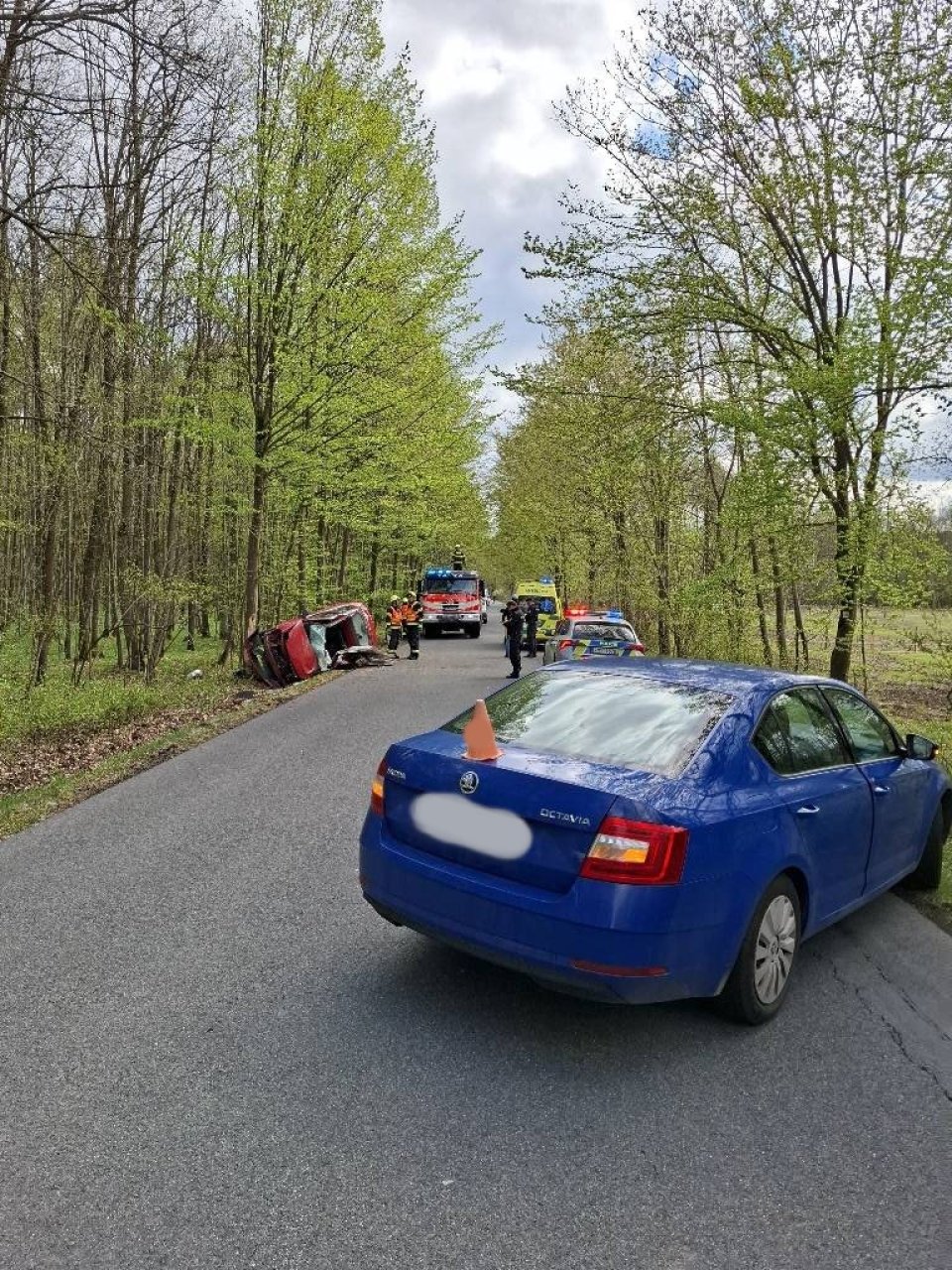 "Podle dosud zjištěných informací 48letý řidič Octavie při odbočování vlevo mimo pozemní komunikaci narazil do vozidla Renault, které ho tou dobou předjíždělo. Devětadvacetiletý řidič vlivem střetu vyjel s vozidlem do příkopu, kde se přetočil přes střechu a narazil do stromu," doplnila mluvčí Policie ČR Ivana Skoupilová.