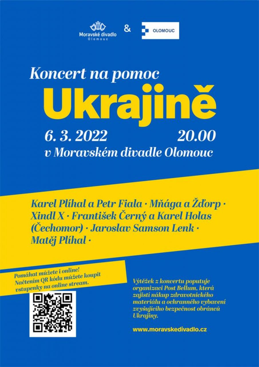 Vstupenky na koncert v hodnotě 500, 1 000 a 1 500 korun budou v prodeji od úterý 1. března od 12 hodin v pokladně a na webu divadla. Ceny vstupenek pro živý stream jsou v cenách 200, 500, 1 000, 5 000 a 10 000 korun. Výtěžek z akce poputuje společnosti Post Bellum. „Za vybrané peníze nakoupíme zdravotnický materiál a ochranné vybavení zvyšující bezpečnost obránců Ukrajiny, jako jsou neprůstřelné vesty, helmy, rukavice, vysílačky, drony s nočním viděním a další neútočné vybavení,“ popsal za společnost Petr Zavadil, ředitel pobočky Paměť národa Střední Morava.