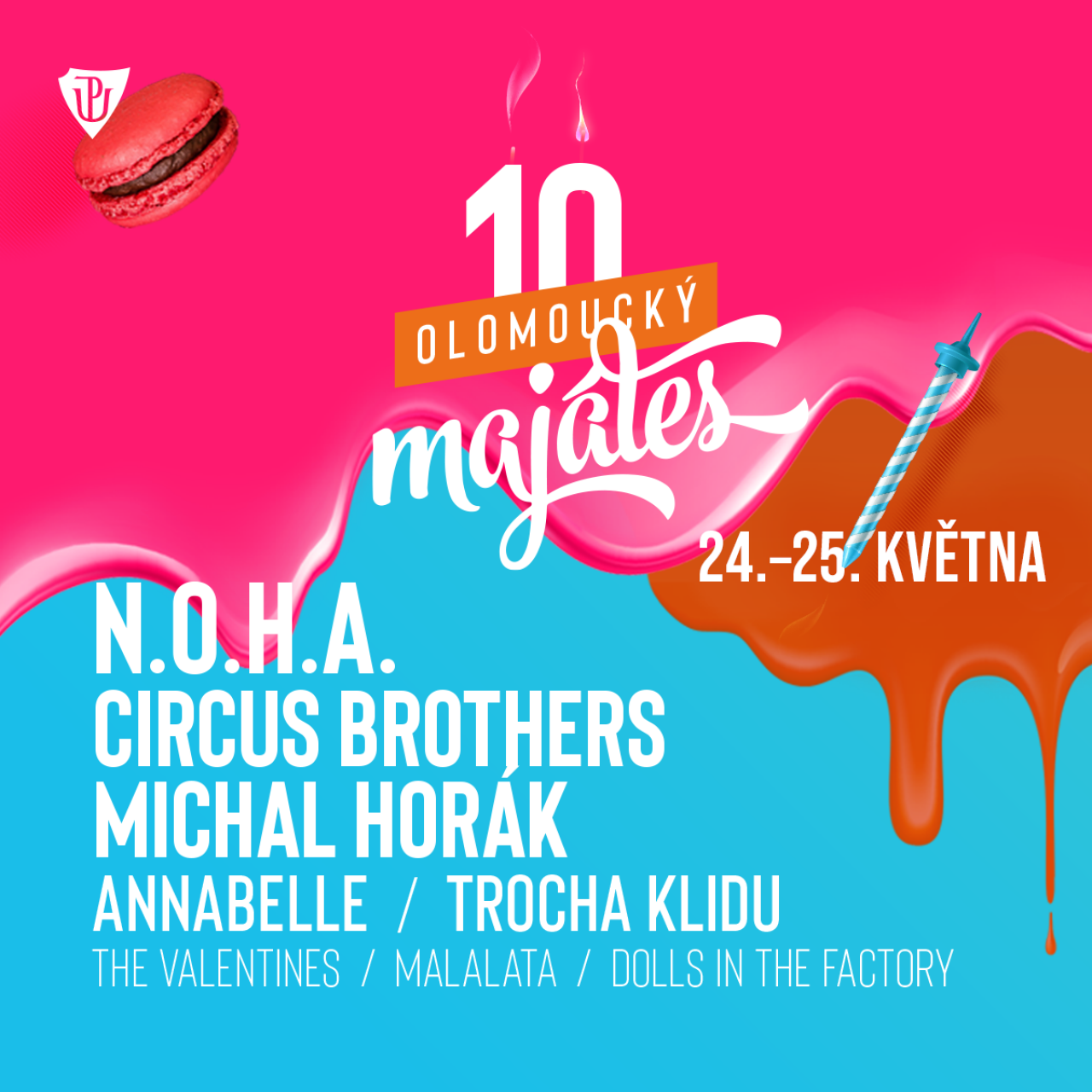 Kromě těchto koncertních čísel nabídne desátý majáles Univerzity Palackého v Olomouci v termínu od 24. do 25. května dalších čtyřicet bodů programu na pěti scénách!