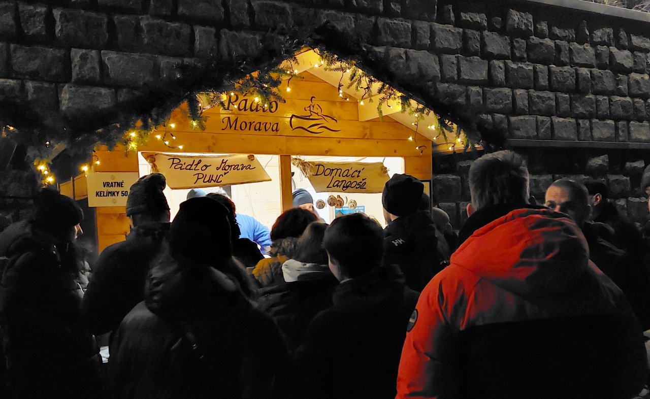 Na Vánoční náplavce chutná dobře snad všechno. Nejvíce jsme si zapamatovali punč od Pádla Morava. A ano, i k němu můžete dostat langoš. Dobrá kombinace.