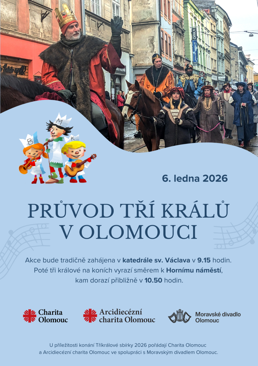„Průvod tří králů je chvílí, kdy se v prostoru města potkávají lidé z různých prostředí. Připomíná hodnoty solidarity a blízkosti a zároveň upozorňuje na smysl Tříkrálové sbírky, která prostřednictvím konkrétní pomoci podporuje lidi v těžkých životních situacích,“ říká ředitel Charity Olomouc Petr Prinz. Pořadateli akce jsou Charita Olomouc a Arcidiecézní charita Olomouc ve spolupráci s Moravským divadlem Olomouc.