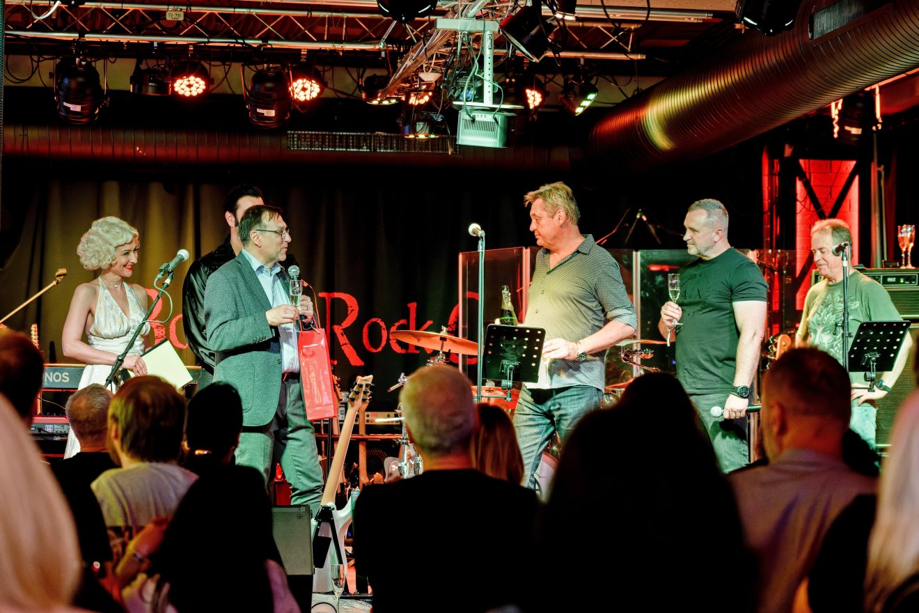 „Hudba je nejen o chytlavých melodiích a zvučných kytarových rifech, ale také hlavně o sdílení radosti. Pavel to dobře ví, a proto vymyslel akci, která dodá muzice tento podstatný rozměr. Je zkrátka rocker tělem i duší,“ říká majitel Bounty Rock Cafe Dušan Neumann, který oslavenci popřál na podiu společně s předsedou správní rady Sigmy Group Milanem Šimonovským v rámci slavnostního přípitku. Svůj gratulační projev zde poté připojil také prof. Pavel Horák, přednosta III. interní kliniky Fakultní nemocnice (FNOL). Celkem se sešlo zhruba 200 gratulantů.