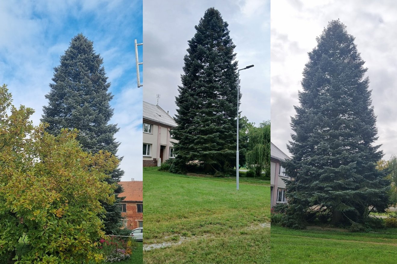 Trojice pohledů na stříbrnou jedli z Líšné, která bude letos zdobit Vánoční trhy Olomouc | Foto: Radim Schubert