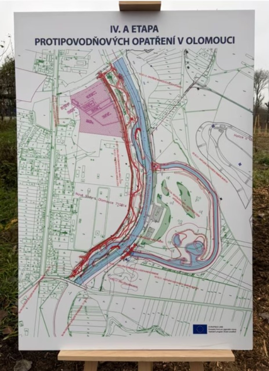 "Při pohledu na levý břeh směrem k Holickému lesu vidíme území pro právě stavebně povolenou IV. B etapu. Zahrnuje zejména vybudování zemního valu kolem Nového Světa, zbudování obtokového ramene a inundačního mostu pod železnicí a revitalizaci údolní nivy tak, aby byl s etapou výše po toku vytvořen logický protipovodňový celek, na nějž v území naváže již zmiňovaný krajinný prvek Holický les," konstatoval Petr Loyka, vedoucí odboru životního prostředí olomouckého magistrátu. "Fungovat to bude tak, že IV. B etapa naváže na úpravy kolem řeky, které byly dokončeny v roce 2013. Tehdy bylo provedeno zkapacitnění doplněné o revitalizaci řeky v úseku nad mostem v ulici Velkomoravská a úpravy skončily u železničního mostu na trati Olomouc – Prostějov. IV. etapa na jihu města bude s touto II. A etapou zrealizovanou výše po toku propojena novým bočním říčním korytem. To se z hlavního toku odpojí nad kojeneckým ústavem a zpět do řeky se vrátí až pod železničním mostem. Přes železniční trať budou povodňové průtoky převedeny novým inundačním mostem, který tak odlehčí povodňovým průtokům v hlavním korytě řeky."