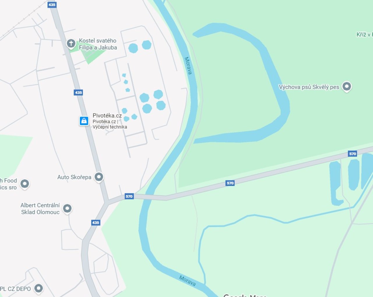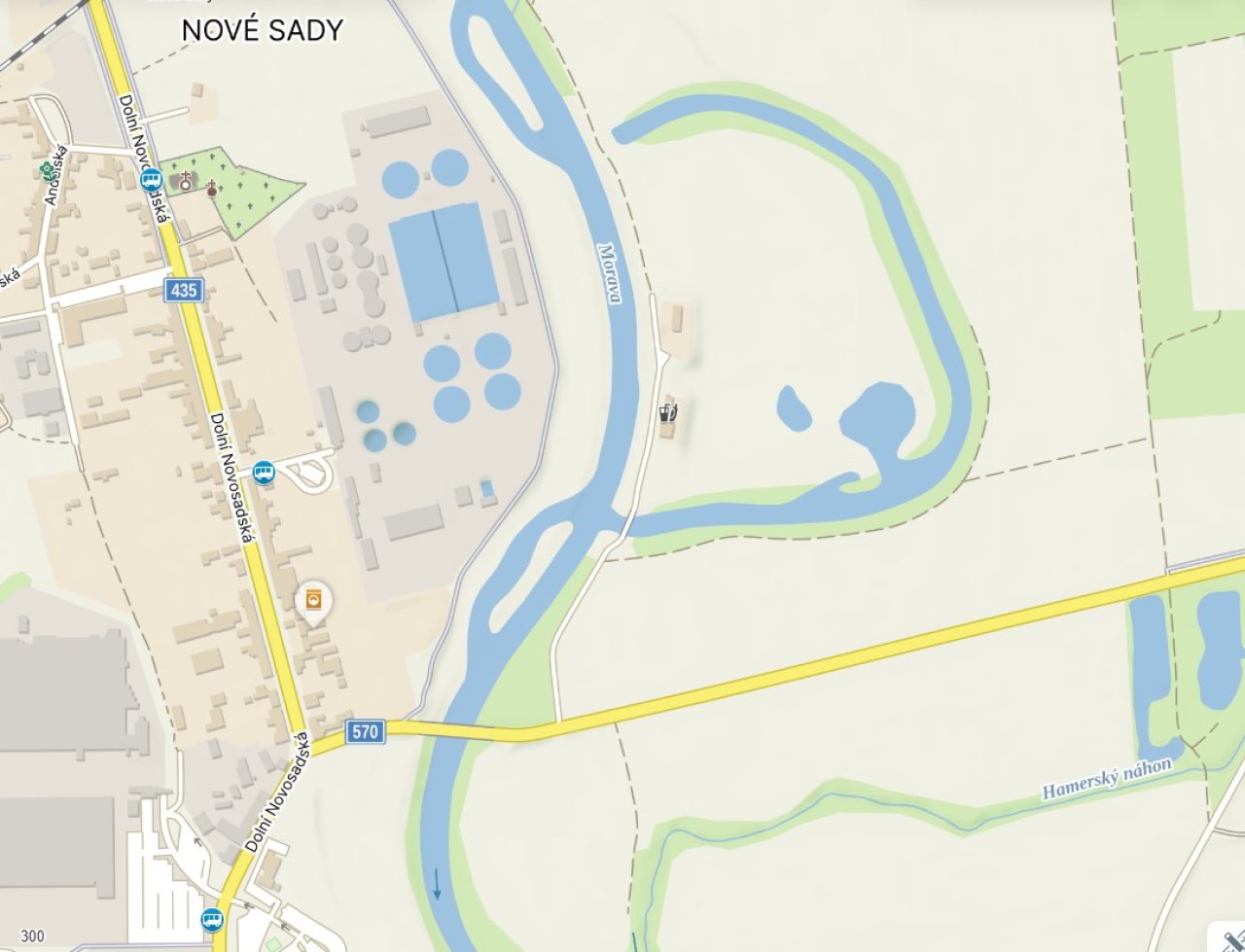 Zde jsou vidět proměny toku řeky a jejího okolí | Zdroj: Mapy.cz