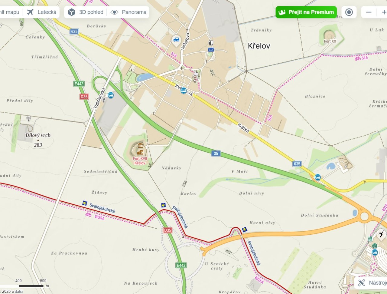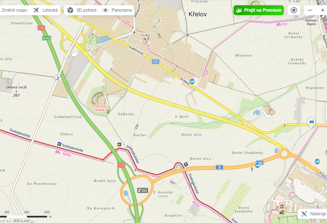 Situace na mapové aplikaci Mapy.cz po otevření dokončeného úseku ve čtvrtek 20. 11. | Zdroj: mapy.cz