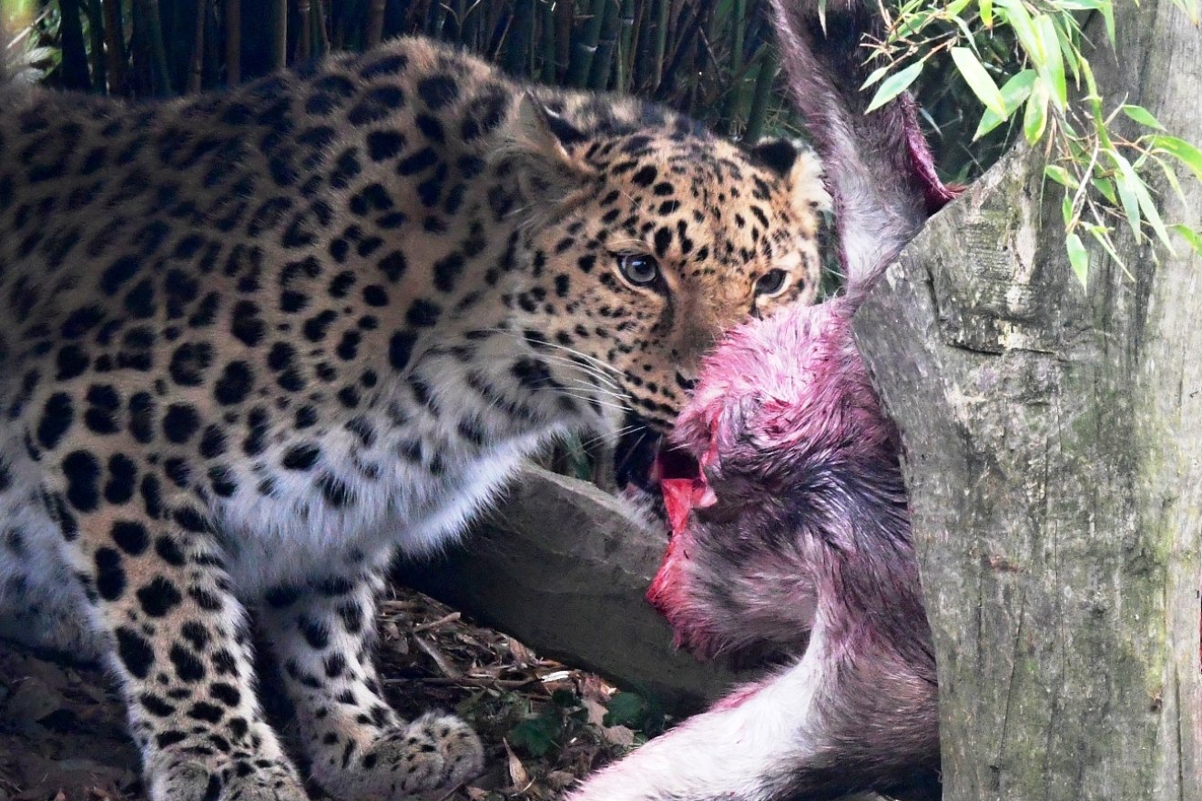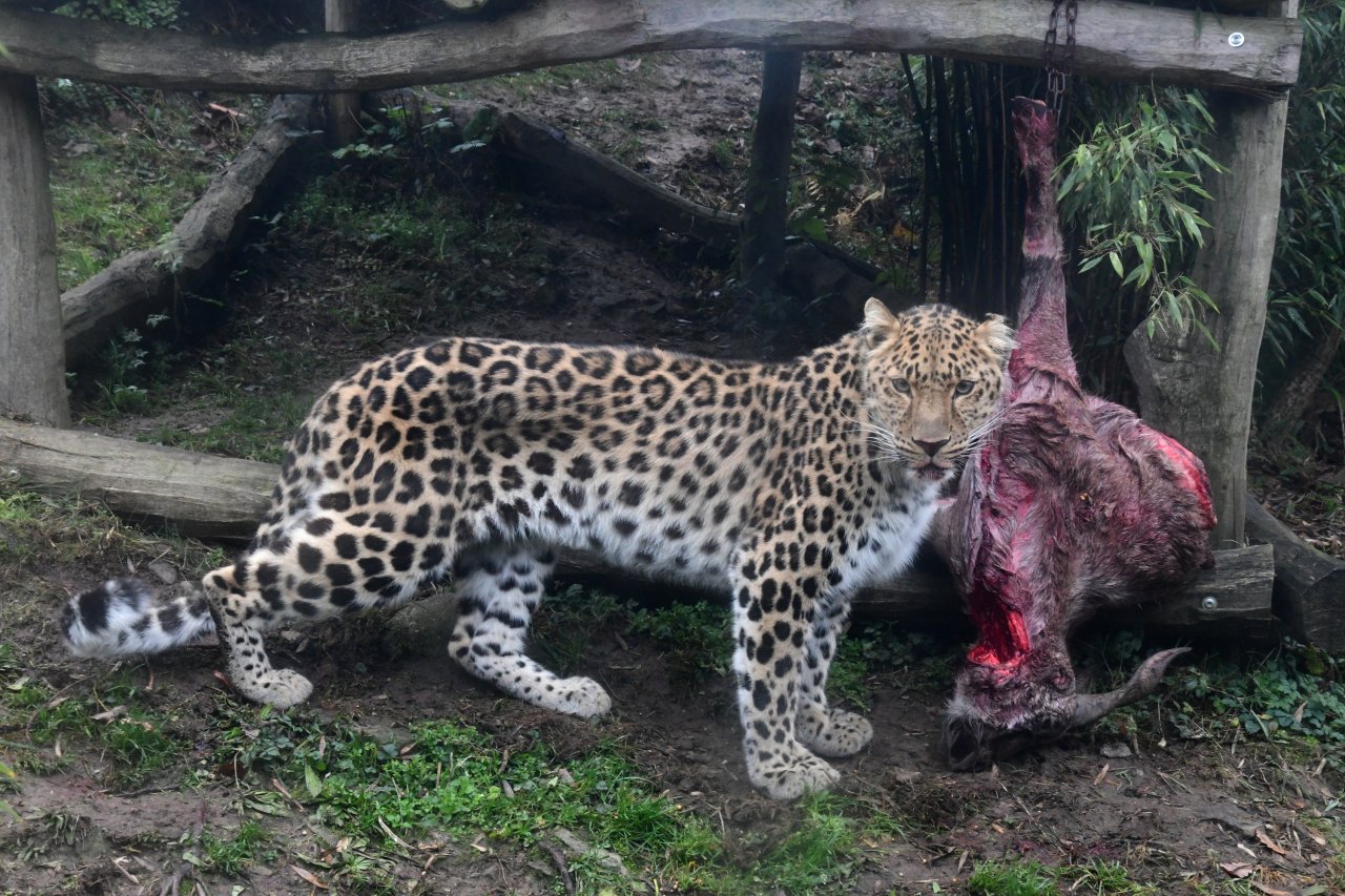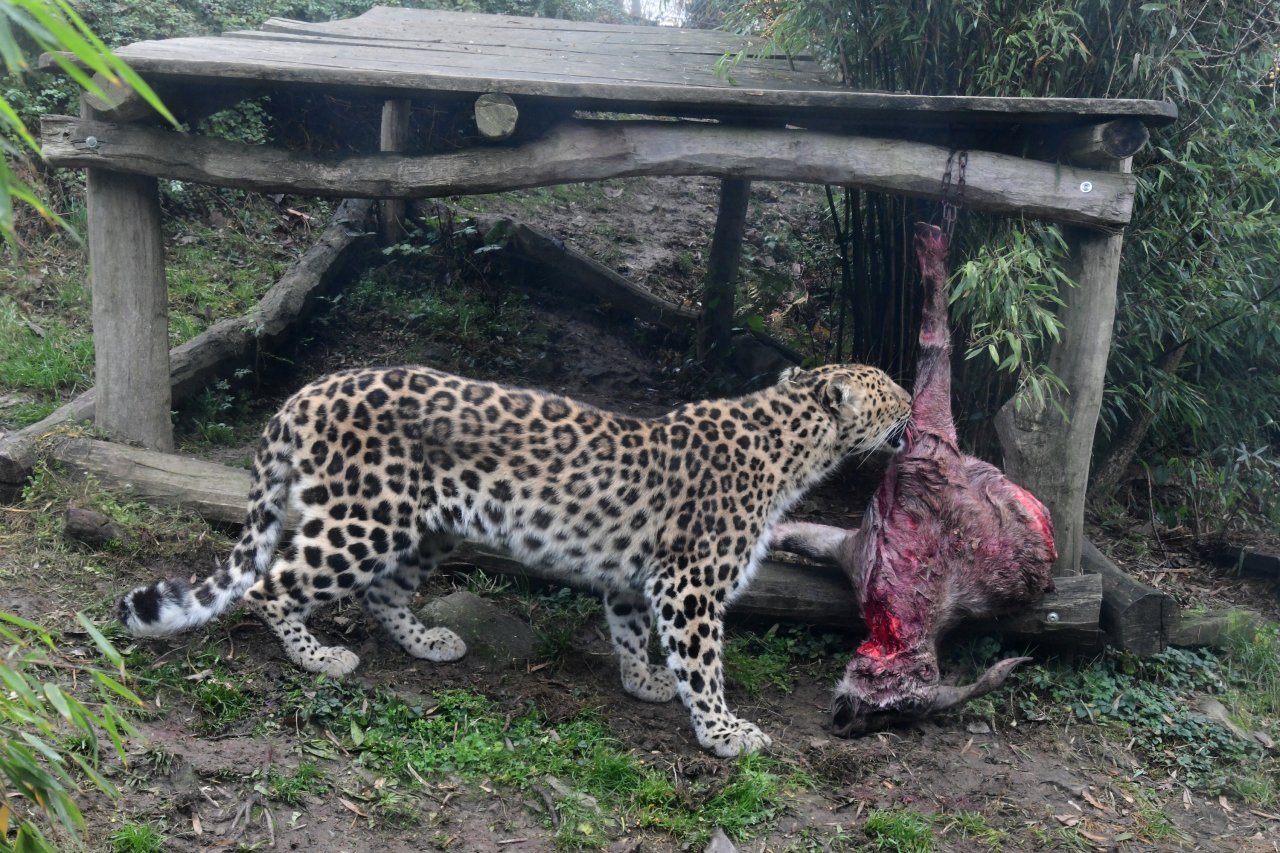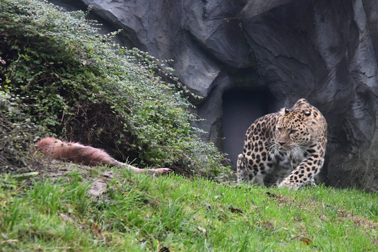 „Po svém příjezdu nejprve pobýval v izolaci, a teprve po ní byl vpuštěn do výběhu. Tam už na něj na přivítanou čekala pořádná hostina v podobě samce kozy šrouborohé, na níž si pochutnali i další dva levharti,” uvádí zooložka Ing. Jitka Vokurková.