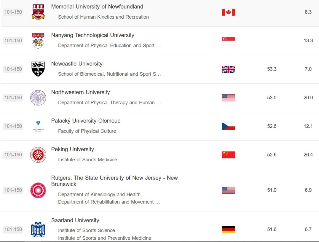 Olomoucká fakulta se v prestižním žebříčku Global Ranking of Sport Science Schools and Departments zařadila mezi 101.–150. nejlepších pracovišť sportovních věd na světě. V tomto žebříčku se přitom porovnává více než 300 univerzit a pracovišť z celého světa, která se věnují sportovním vědám. O to víc může studenty, pedagogy i příznivce Univerzity Palackého těšit, že se naše fakulta dokázala prosadit v tak silné mezinárodní konkurenci.