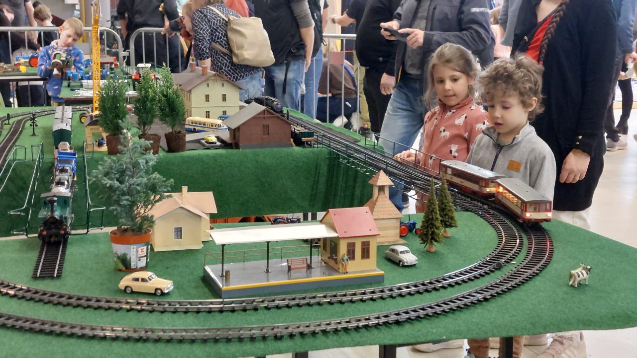 Výraznou část programu tvoří také železniční modelářství — od zahradní železnice velikosti G přes velikosti H0 a 0 až po modulovou železnici TT a interaktivní kolejiště velikosti N. Nechybí ani funkční RC modely stavební, vojenské i dopravní techniky.